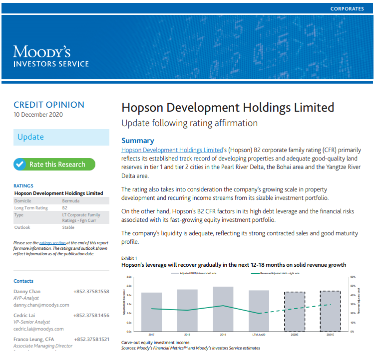 弘阳信用评级报告:禁止境内发债,融资受限(穆迪·2020.12.10)